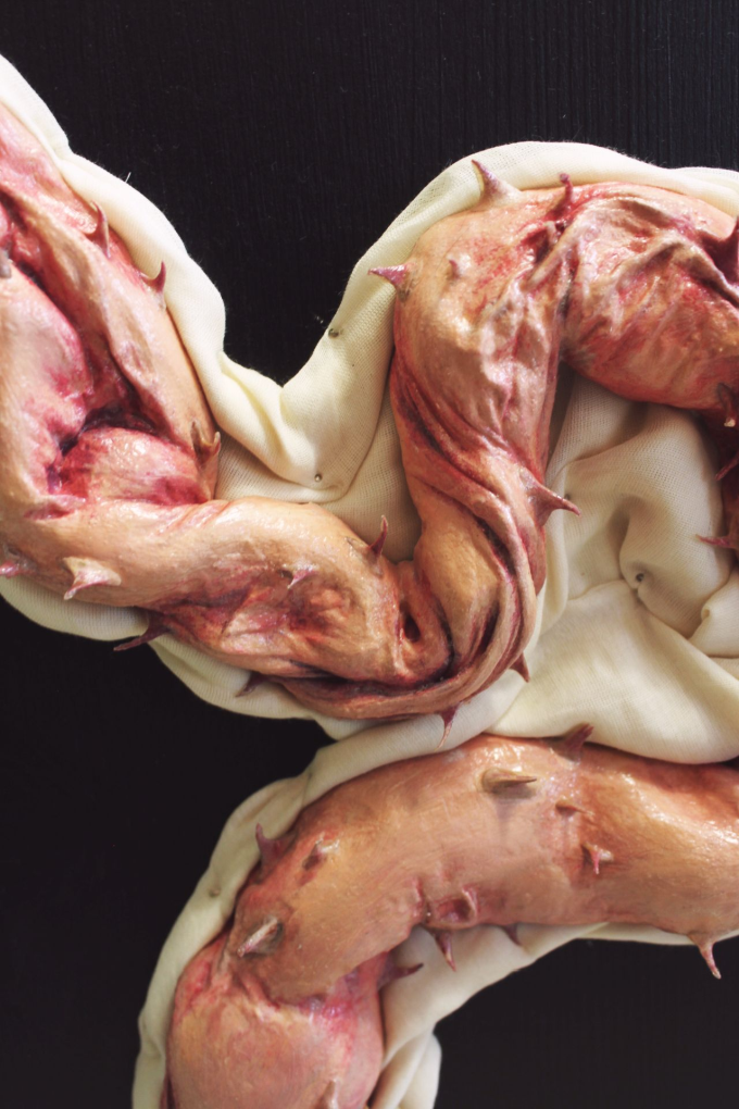 Die Arbeit stellt den Versuch einer Visualisierung der Zwangsgedanken dar, die die Künstlerin seit mehreren Jahren begleiten. Die Art der Präsentation des Gedankenstrangs ist angelehnt an die sogenannter Moulagen – in Größe, Form und Farbe detailgetreue Wachsabformungen krankhaft veränderter Organe, Gliedmaßen oder Hautpartien. Nach dem Beginn der Wachsabformungspraxis im 16. Jahrhundert hatten sie ihren Höhepunkt als begehrtes medizinisches Dokumentations- und Studienobjekt im 19. und frühen 20. Jahrhundert, bevor ihre Bedeutung spätestens mit der Verbreitung der Farbfotografie ab den 1950er schwand.