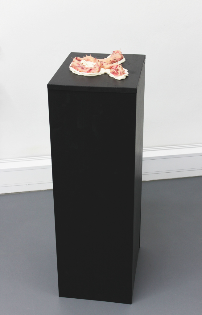 Cogitatio compulsionis, 6x30x40.5 cm, Gips, Stoff, Latex, Acrylfarbe, Holz, Metall, 2019